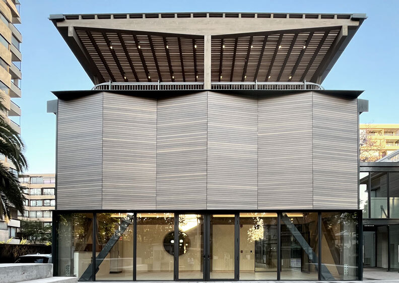 El proyecto incorpora una estructura de madera masiva compuesta por pilares y vigas de madera laminada (Glulam) y losas de madera contralaminada (CLT). Con tres niveles y una terraza superior, el edificio alcanza cerca de 1.400 m² construidos y se posiciona entre las primeras edificaciones institucionales en altura en Chile desarrolladas con CLT.